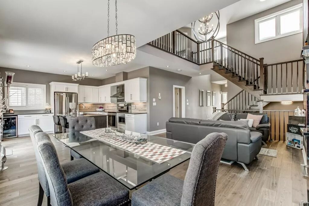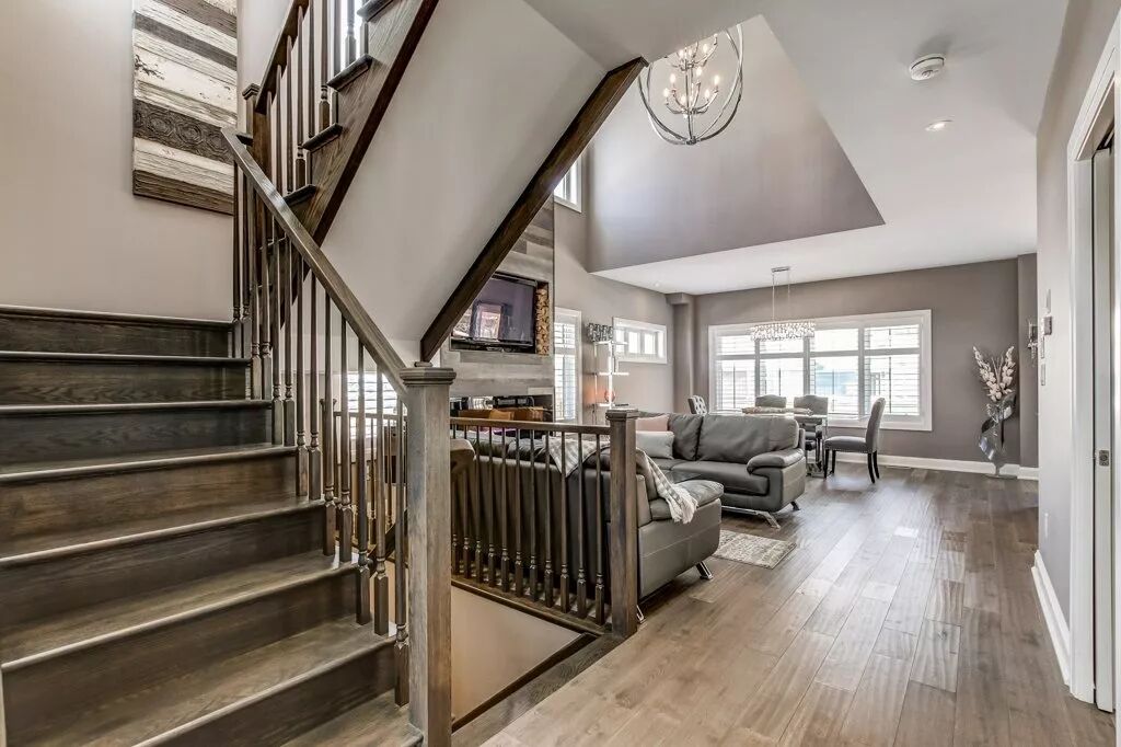 橡木楼梯,实木地板,大理石台面,水晶灯,整体风格时尚大气,精致典雅。物业内部采光极佳,空间宽敞,客厅挑高增加了层次和设计感。物业客厅部分采用灰色基调,木质设计细节更增添了温馨的气氛,不仅具备了实用性,还能体现出生活的精致与品味。